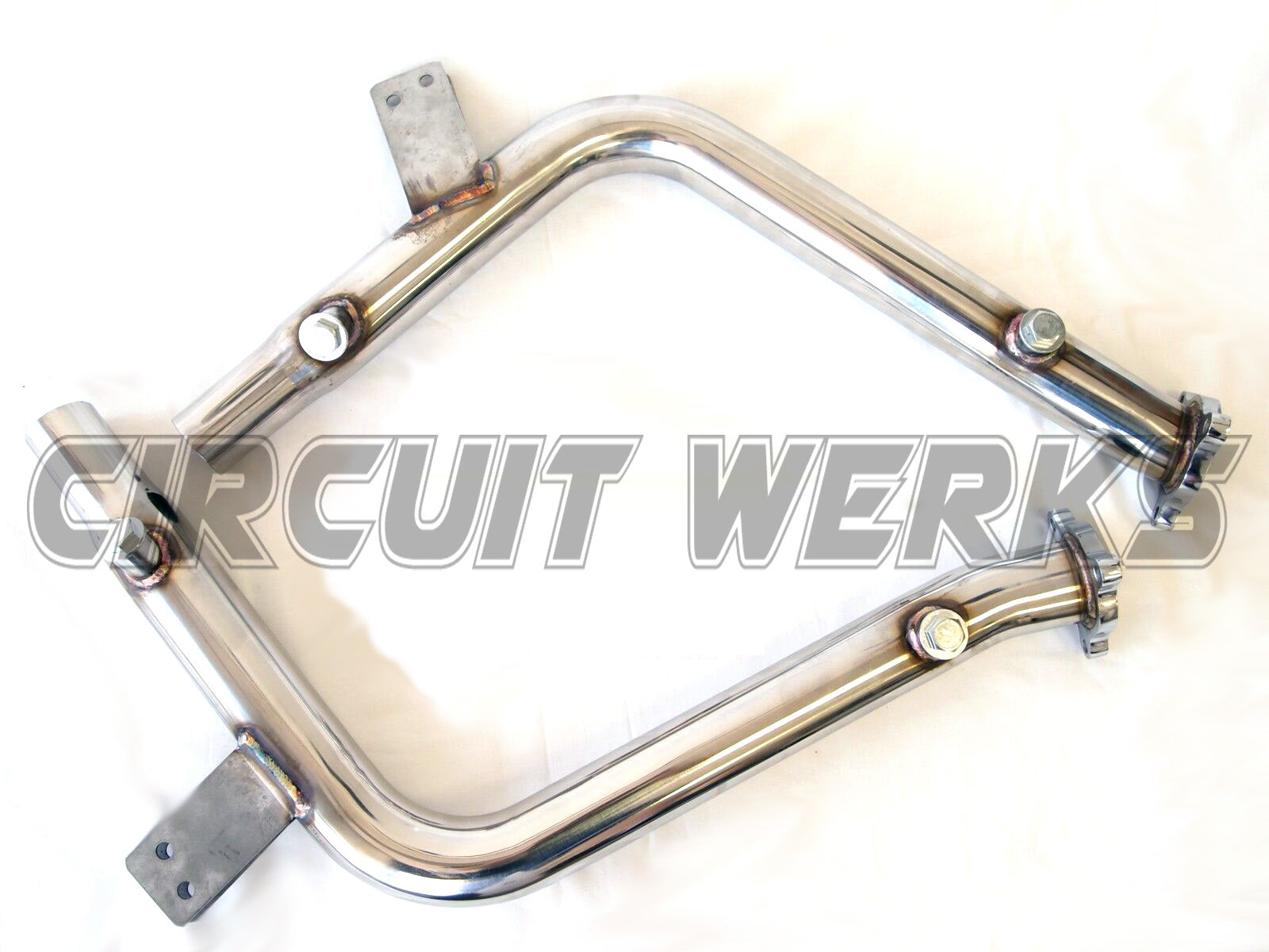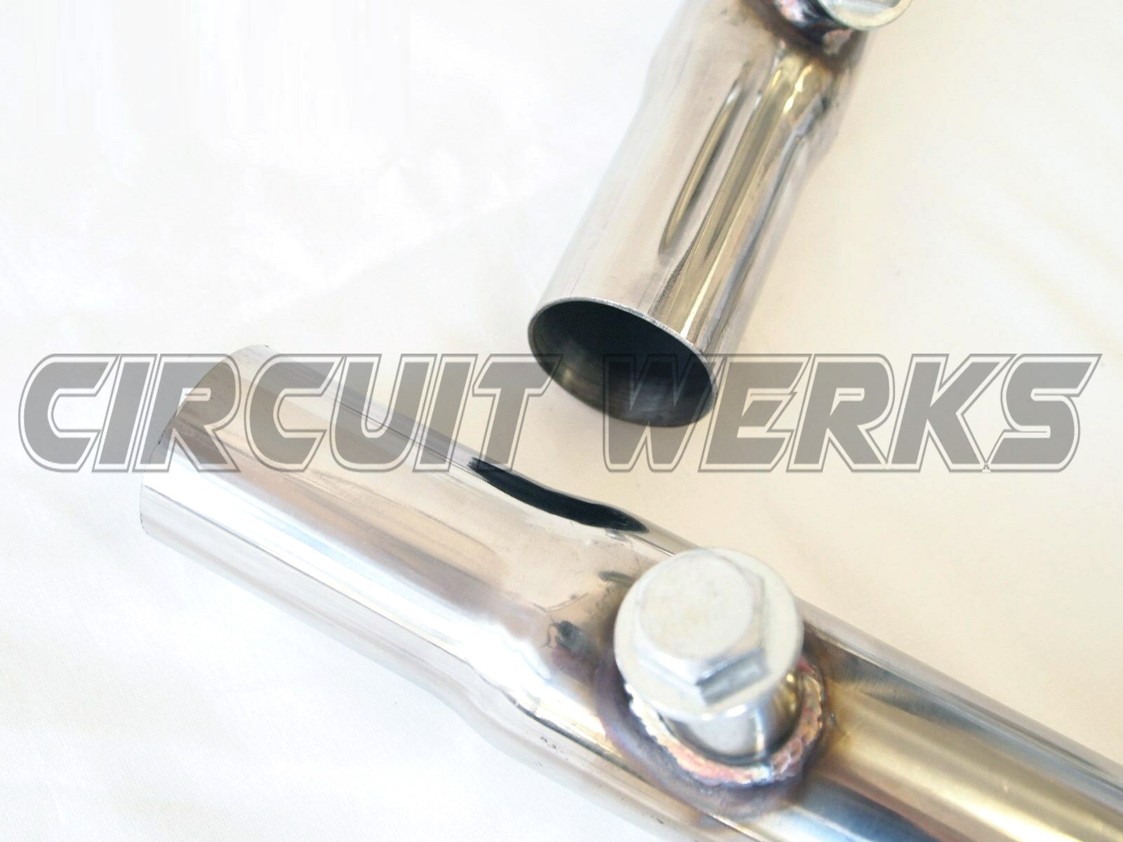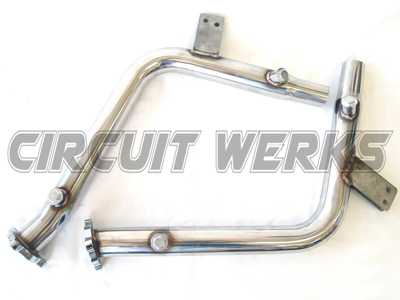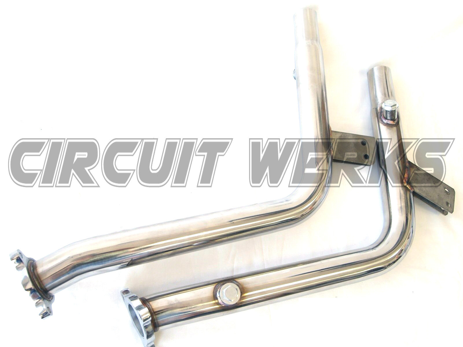Circuit Werks latest 2000-2004 Porsche Boxster Secondary Exhaust Test pipes Fits all 2000-2004 986 Base Models and Boxster S Models. Fits both 2.7L & 3.2L. Tri-Bolt flange bolts directly to your OEM or any aftermarket headers. Must reuse factory gaskets. The Outlet clamps directly to your OEM "C" Pipes. Both Pipes combined only weighs 12 lbs. You save about 22 lbs off your original pipes, plus it'll gain/free up about 4-8 hp depending on your intake, headers, and exhaust setup. All combined even more hp gain.