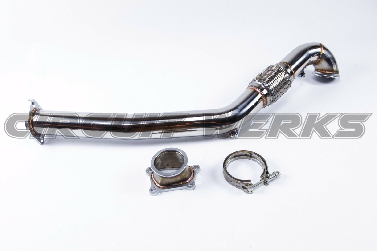 Circuit Werks latest Mazda 2005-2007 Mazdaspeed 6 Turbo Full 3" Version 2 Downpipe with Turbo Outlet and Flex Pipe. Comes with a V-Band Clamp, turbo 5 bolt gasket, gasket between the V-Band Clamp, 2 bolt gasket to the exhaust, and all the hardware pictured. Professional installation might be required. This is a full 3" downpipe coming out from your stock 5 bolt turbo, then it'll bolt right onto your exhaust. Comes with three o2 bungs with plugs or for wideband port. If you have any questions, feel free to contact us anytime.