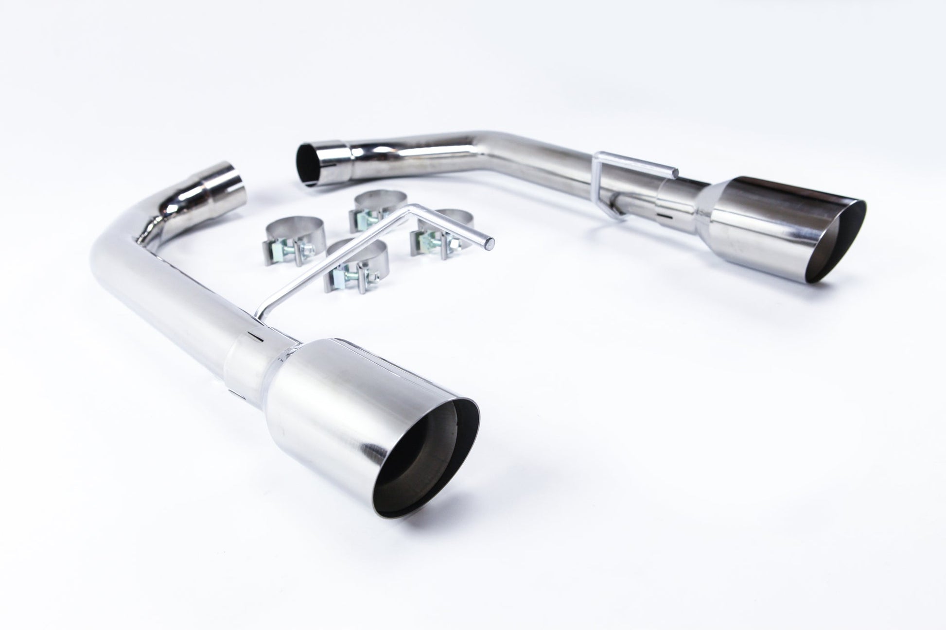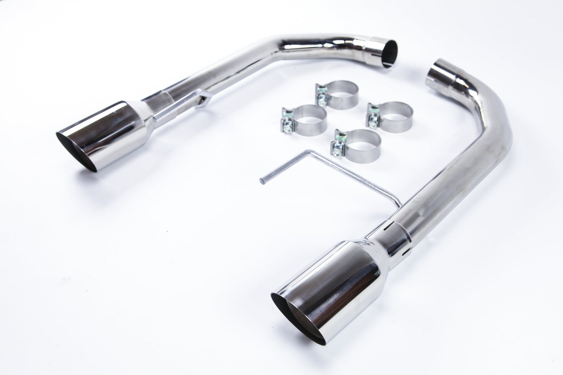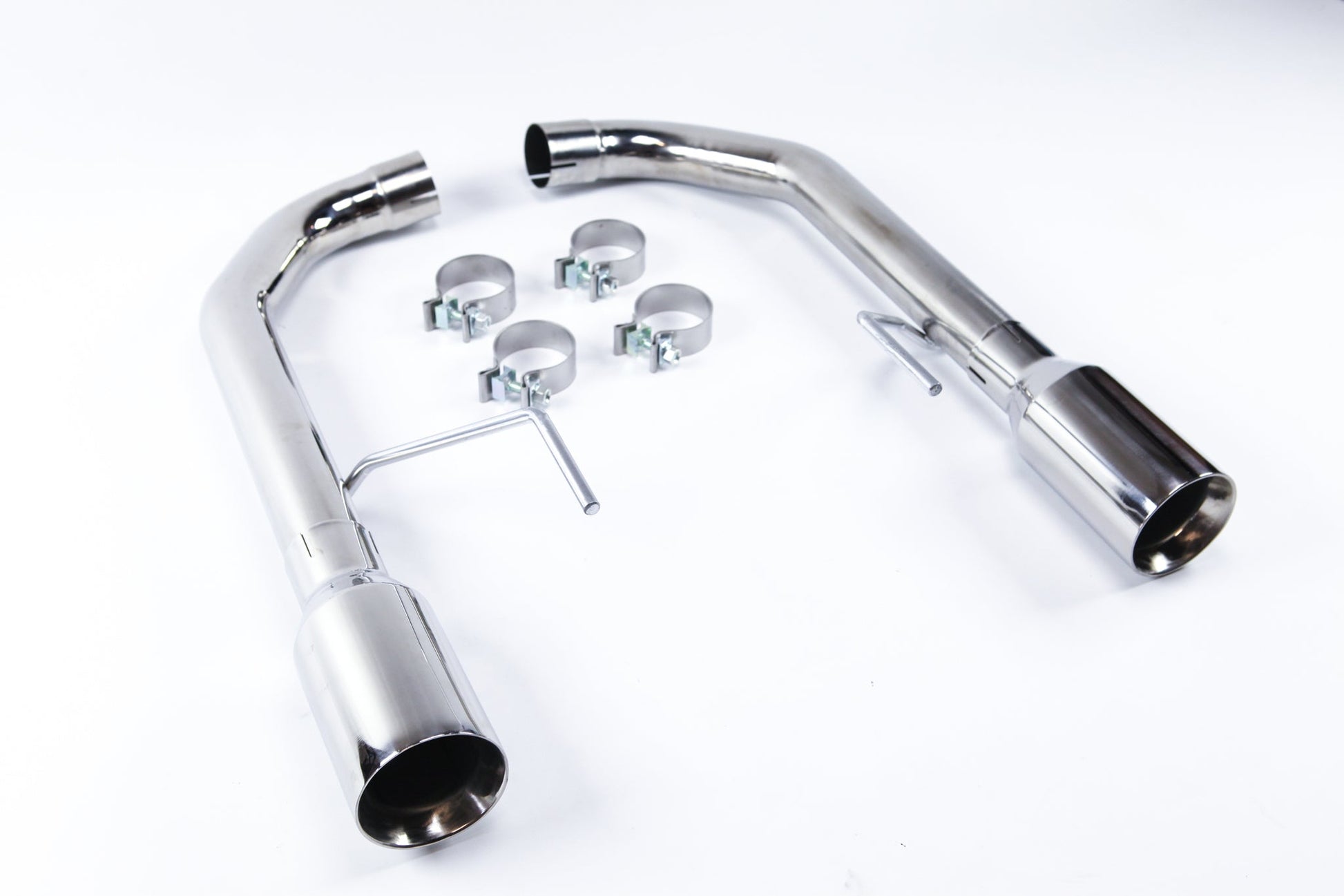 Circuit Werks latest 2015-2017 Ford Mustang axle back Exhaust System. Fits all 2015-2017 Mustang V8's only. Could fit other models with modification. Dual Polished Tips measuring 4" and mandrel bent exhaust piping. This is a slip on exhaust to your factory pipes. Fits perfectly between your rear bumper cutout for the exhaust tips. The Polished Tips will be exposed from your rear bumper giving it the Sport look. By installing our Circuit Werks High Performance exhaust system, you will not only improve dramatically the sound of your Mustang, but you will also gain the horsepower where you would normally drive the car. Like to a local car meet, to work, or weekend cruising around town. The sound is very subtle but once you step on it, you can hear the deep sport tune exhaust tone. Deep tone at low RPM, and a true performance V8 scream at high RPM. High polished stainless steel, all are hand built to meet our high quality standard, then T.I.G. welded together. |