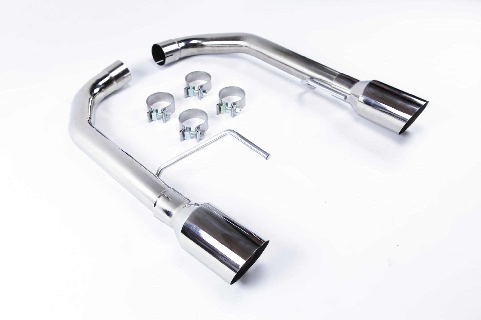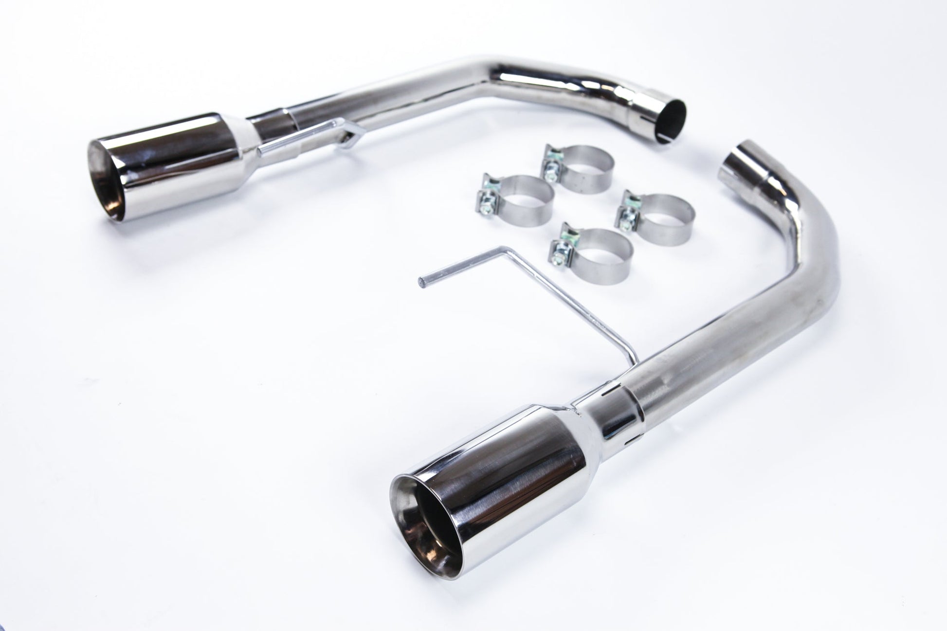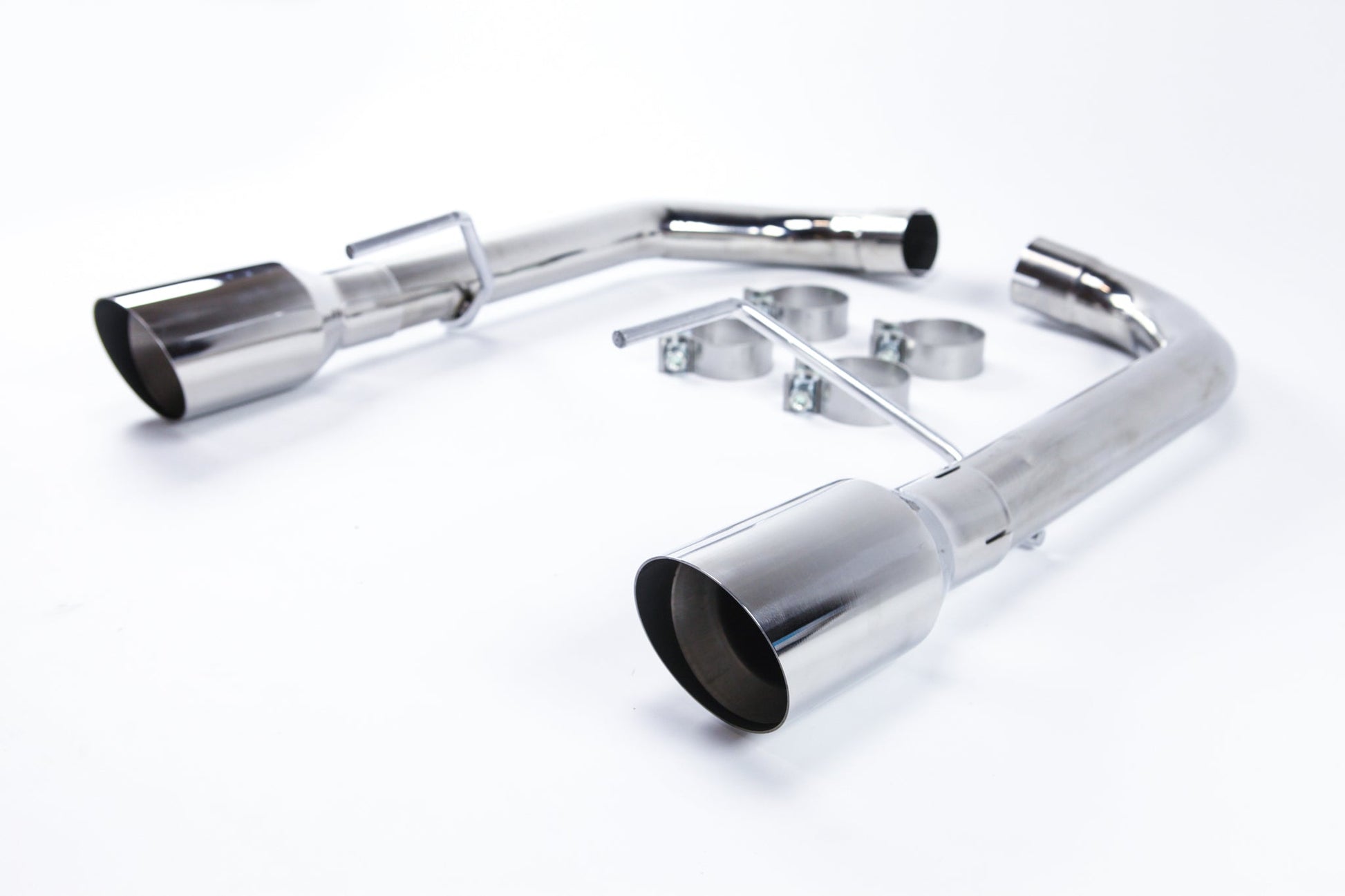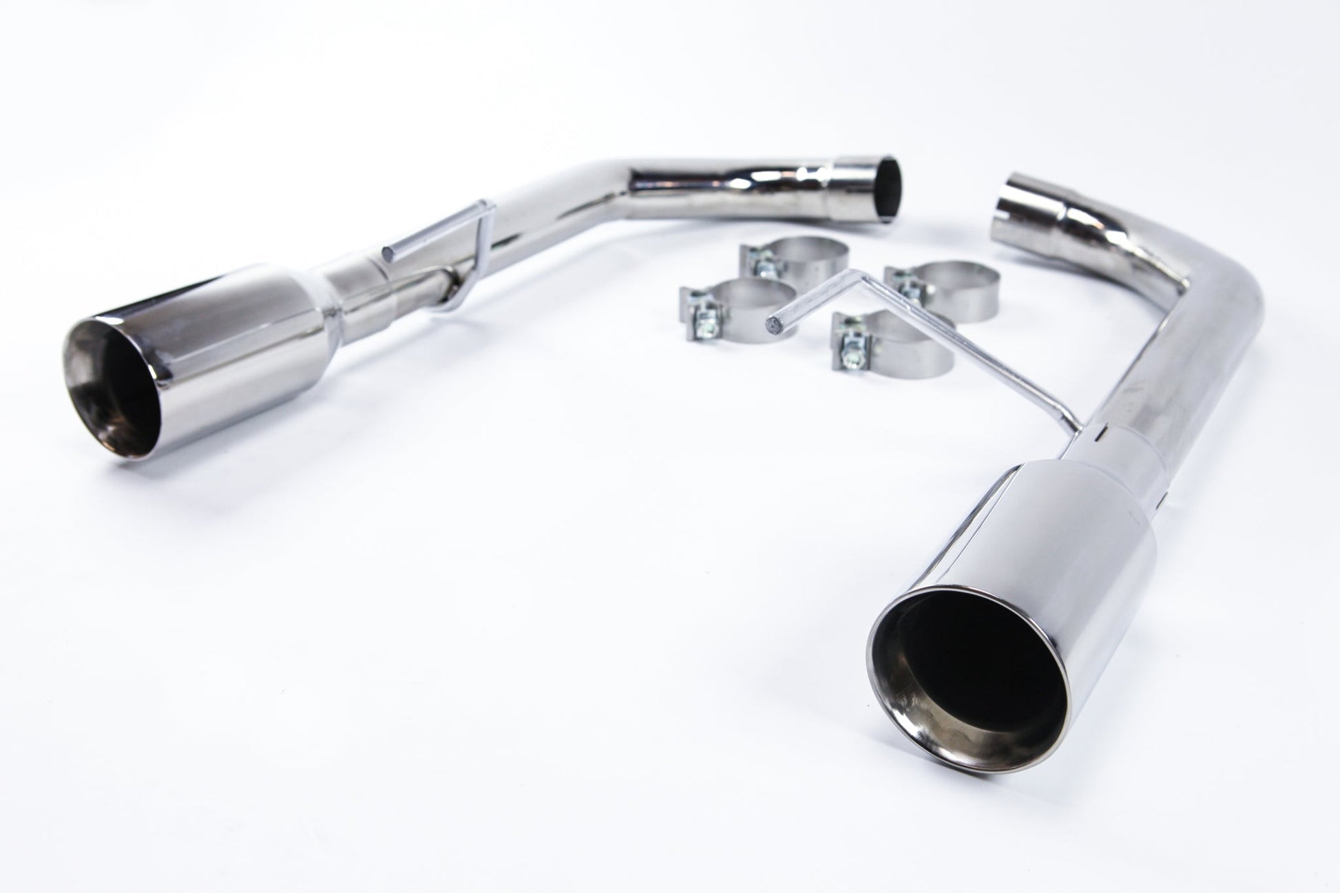 Circuit Werks latest 2015-2017 Ford Mustang axle back Exhaust System. Fits all 2015-2017 Mustang V8's only. Could fit other models with modification. Dual Polished Tips measuring 4" and mandrel bent exhaust piping. This is a slip on exhaust to your factory pipes. Fits perfectly between your rear bumper cutout for the exhaust tips. The Polished Tips will be exposed from your rear bumper giving it the Sport look. By installing our Circuit Werks High Performance exhaust system, you will not only improve dramatically the sound of your Mustang, but you will also gain the horsepower where you would normally drive the car. Like to a local car meet, to work, or weekend cruising around town. The sound is very subtle but once you step on it, you can hear the deep sport tune exhaust tone. Deep tone at low RPM, and a true performance V8 scream at high RPM. High polished stainless steel, all are hand built to meet our high quality standard, then T.I.G. welded together. |