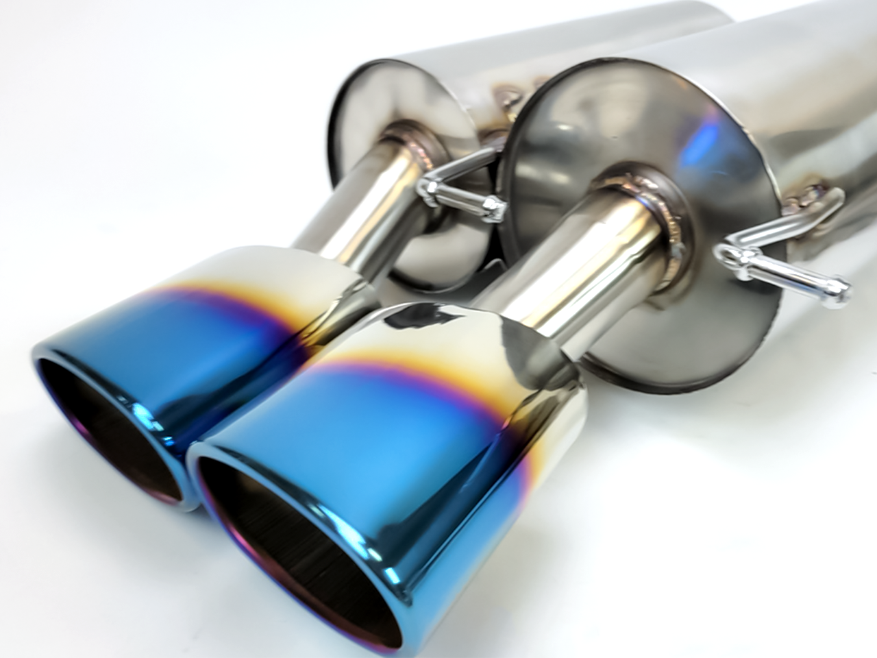 Circuit Werks latest 2006-2010 BMW M5 (E60) Dual Muffler Axle Back Exhaust System with Burnt Tips. Fits all 2006-2010 E60 V10 M5's only. Quad Burnt Oval Tips measuring 5" wide by 3" height each. Full 2.5" / 63.5mm exhaust piping diameter. This is a slip on exhaust to your factory mid pipe. Fits perfectly between your rear bumper cutout for the exhaust tips. The Burnt Tips will be exposed from your rear bumper giving it the Sport look. Also available in Black Edition, Brush Finish, and the Polished Tips version.